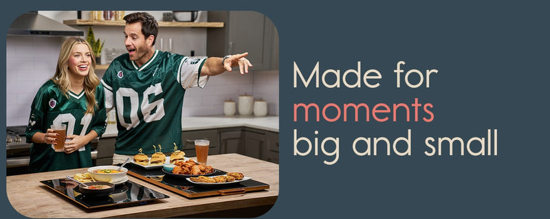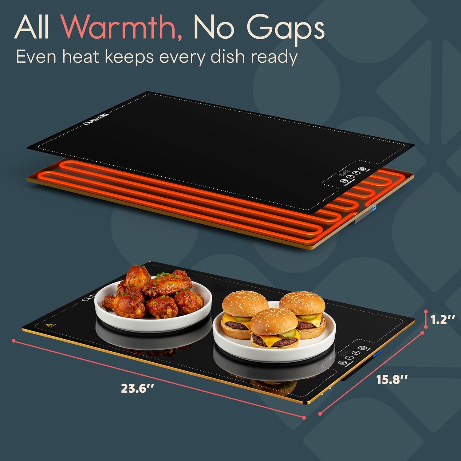 With a sleek black glass surface and elegant gold trim, it looks as beautiful on your table as it performs. Designed for family dinners, holiday spreads, game-day hosting, and special gatherings, HeatDeck® blends refined design with dependable performance so every meal feels effortless and worth gathering for.